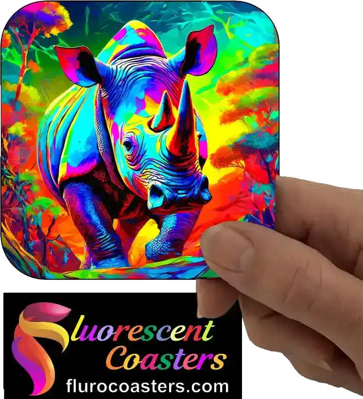 Fluorescent Coasters - Rhinoceros 8, African Wildlife, 400738