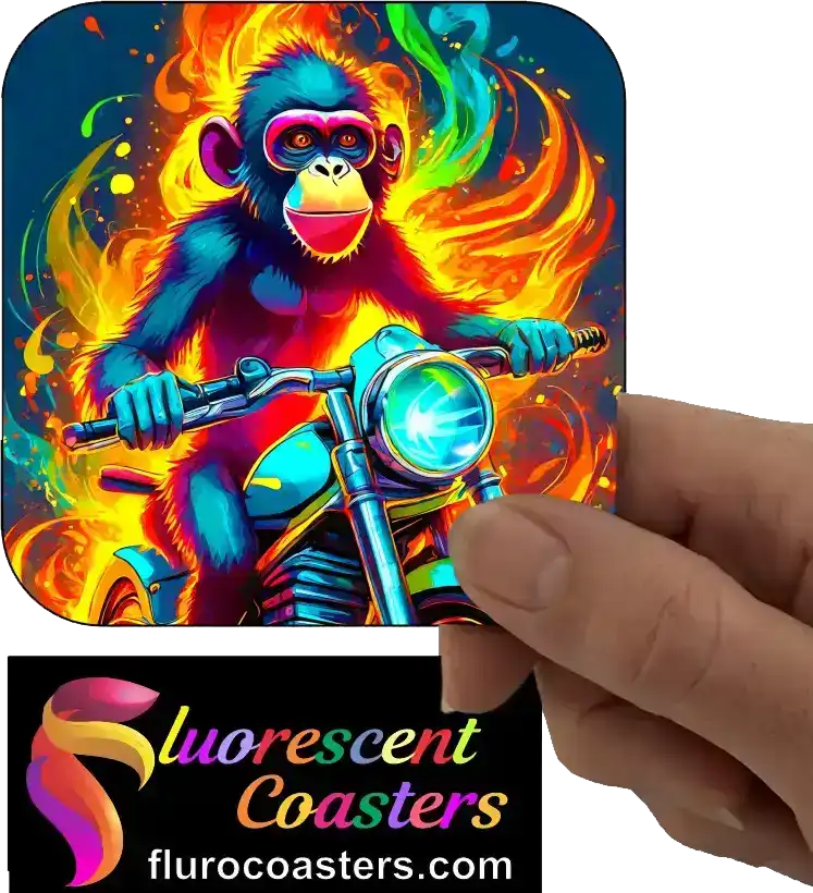 Fluorescent Coasters - Monkey on Motor Bike 1, Bikes, 400823