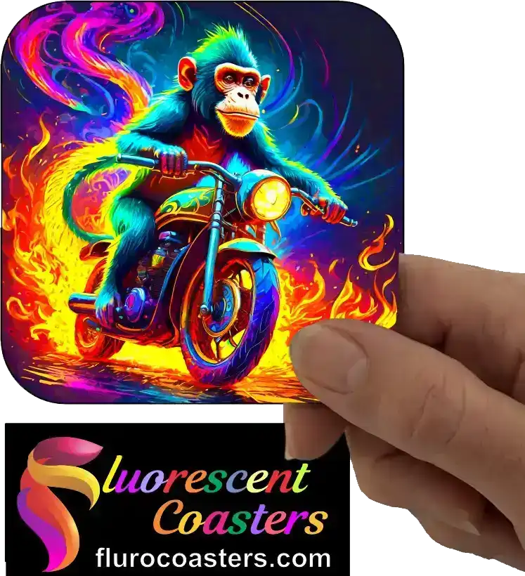 Fluorescent Coasters - Monkey on Motor Bike 3, Bikes, 400825