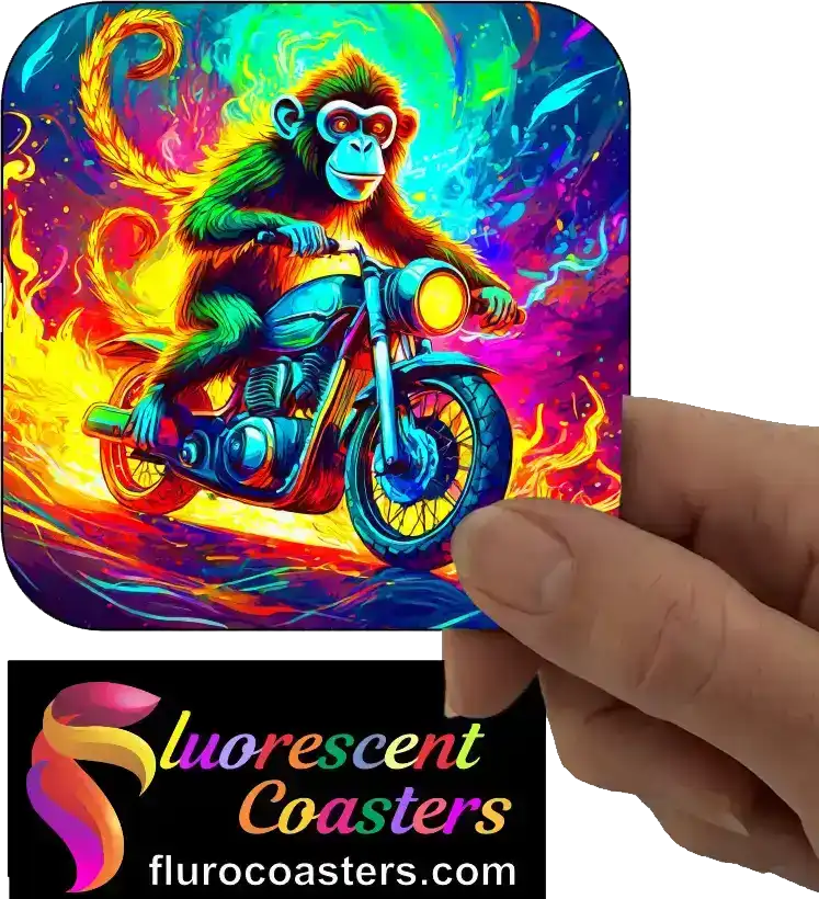 Fluorescent Coasters - Monkey on Motor Bike 4, Bikes, 400826