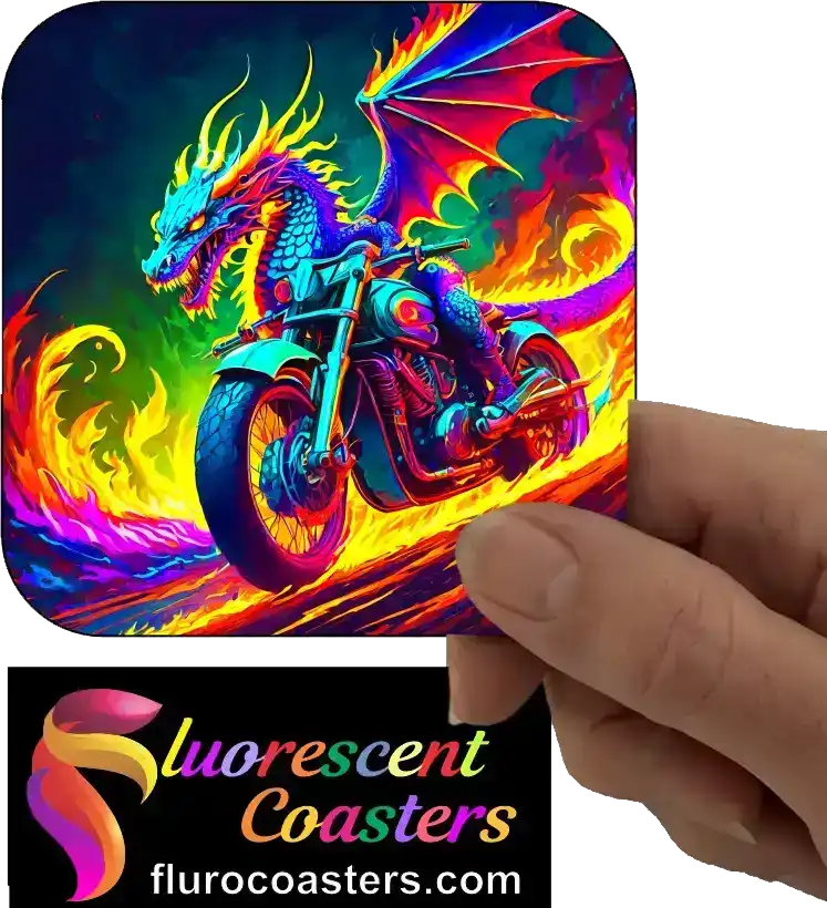 Fluorescent Coasters - Dragon on Motor Bike 1, Bikes, 400832