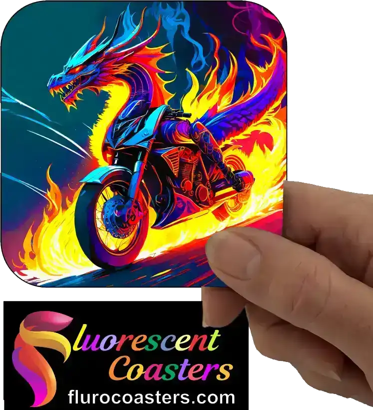 Fluorescent Coasters - Dragon on Motor Bike 2, Bikes, 400833