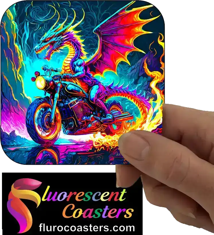Fluorescent Coasters - Dragon on Motor Bike 5, Bikes, 400836