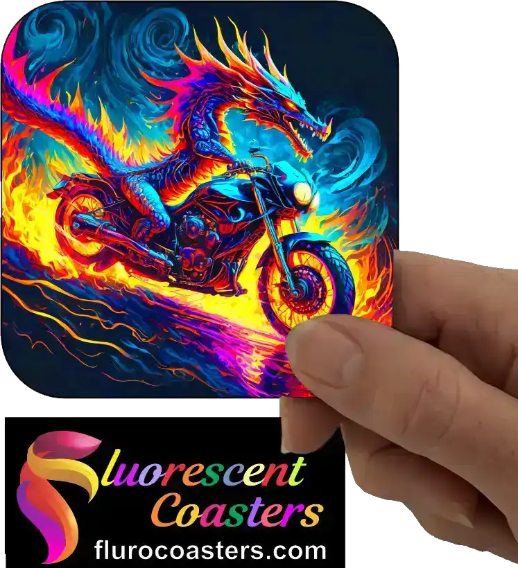 Fluorescent Coasters - Dragon on Motor Bike 6, Bikes, 400837