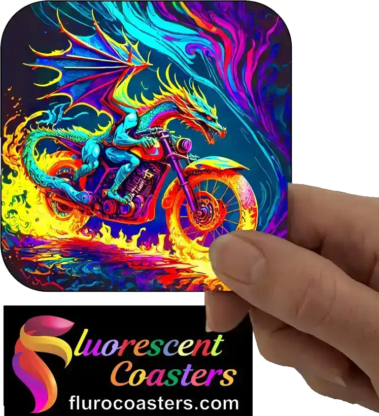 Fluorescent Coasters - Dragon on Motor Bike 8, Bikes, 400839