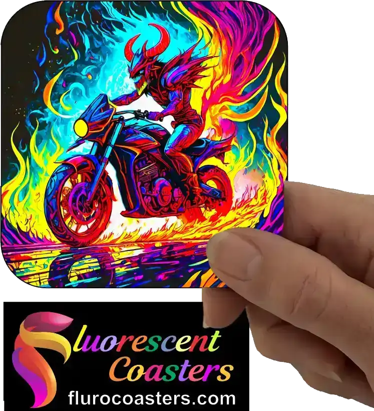 Fluorescent Coasters - Devil On Motor Bike 1, Bikes, 400843