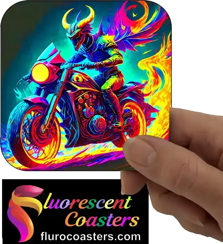 Fluorescent Coasters - Devil On Motor Bike 3, Bikes, 400845