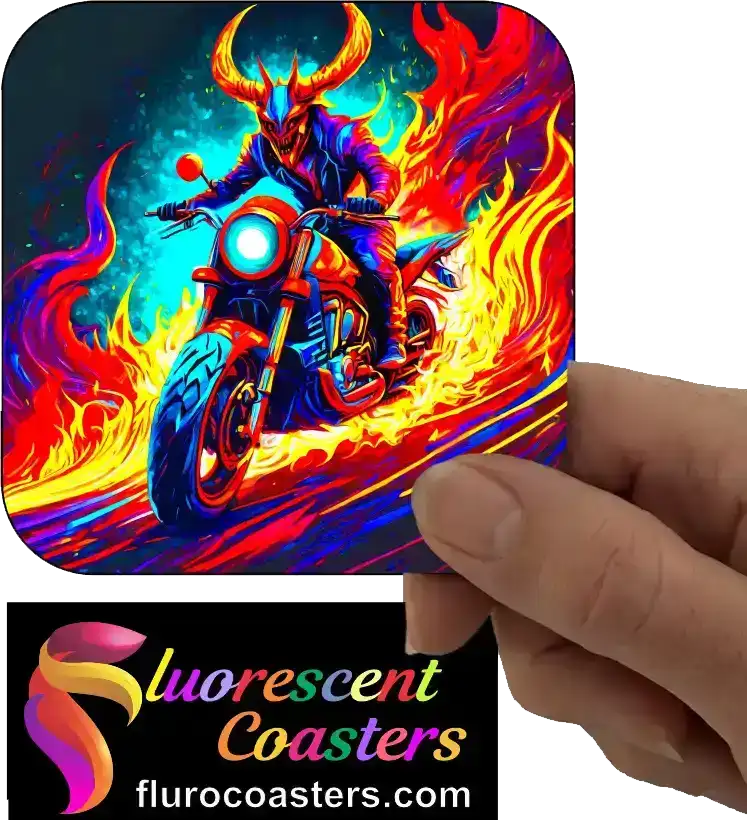 Fluorescent Coasters - Devil On Motor Bike 5, Bikes, 400847