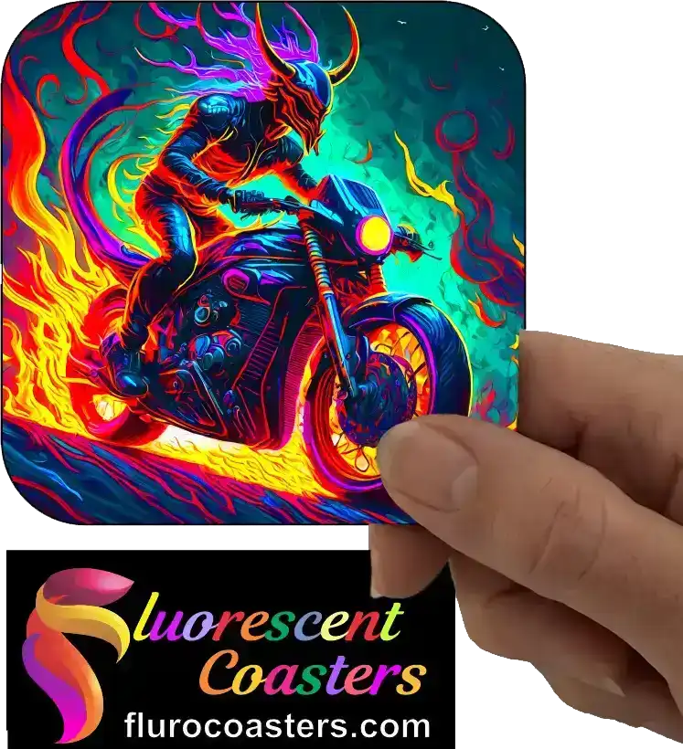 Fluorescent Coasters - Devil On Motor Bike 6, Bikes, 400848
