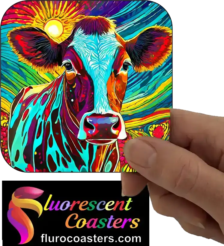 Fluorescent Coasters - Cow 2, Farm Animals, 401346