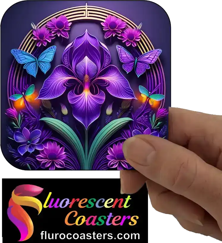 Fluorescent Coasters - Iris Flower With Butterfly 1, Nature, 401693