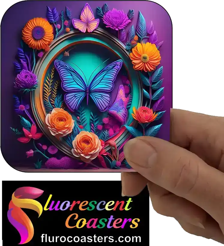 Fluorescent Coasters - Décor art with Flowers & Butterflies 10, Nature, 401742