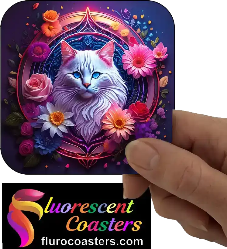 Fluorescent Coasters - Décor art with flowers & cat, Cats, 401746