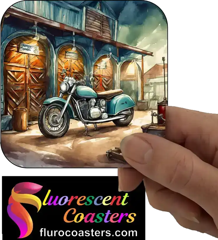 Fluorescent Coasters - Retro Motor Bike, Cars, 401755