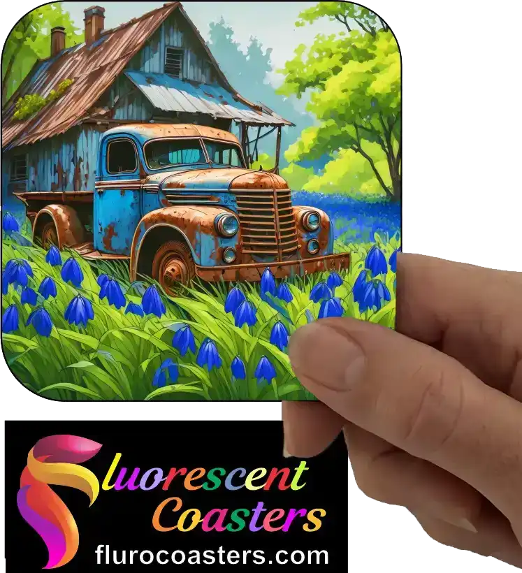Fluorescent Coasters - Old Rusty Car On Farm 2, Cars, 401757