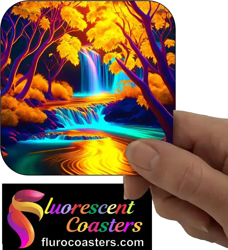 Fluorescent Coasters - Golden Autumn With Waterfall 2, Nature, 401774