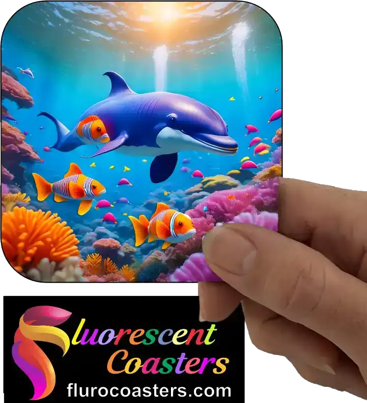 Fluorescent Coasters - Dolphin with Clown Fish 2, Fish, 401776