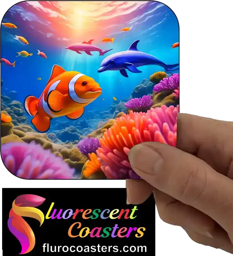Fluorescent Coasters - Dolphin with Clown Fish 3, Fish, 401777