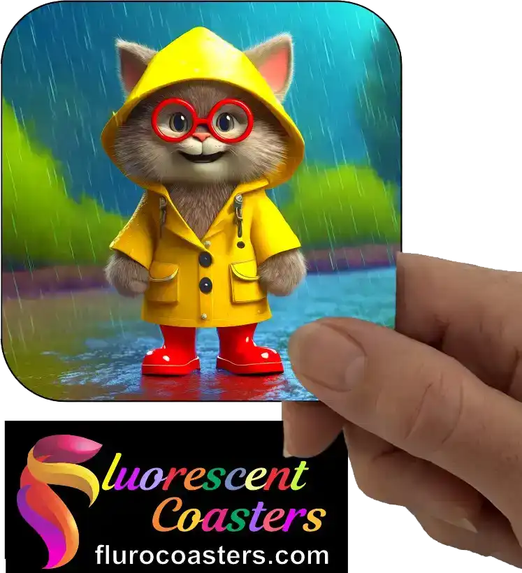 Fluorescent Coasters - Cat in Rain 3, Cats, 401795