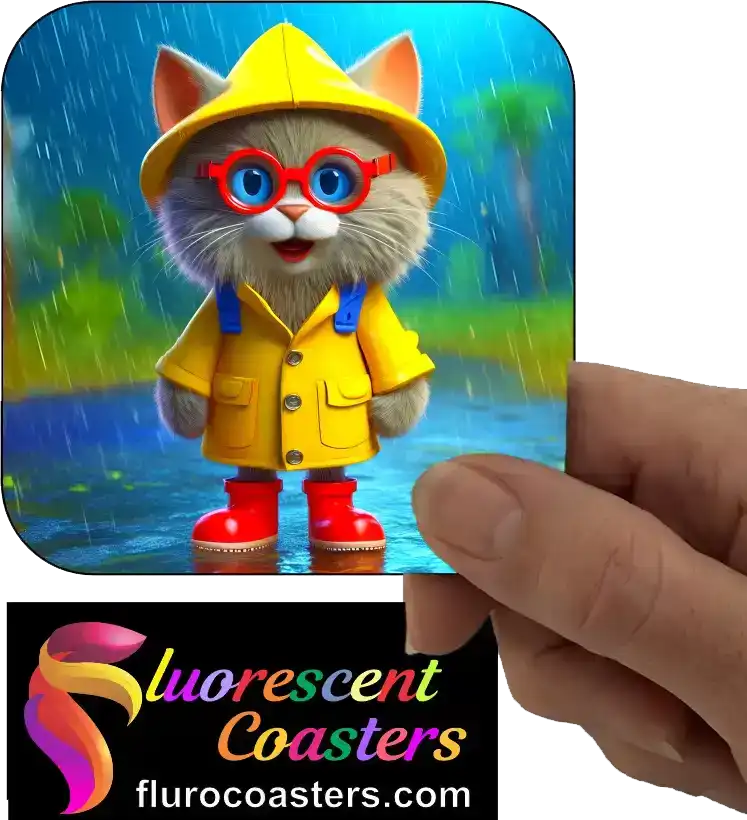 Fluorescent Coasters - Cat in Rain 4, Cats, 401796