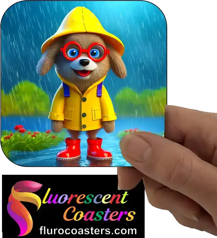 Fluorescent Coasters - Dog in Rain 4, Humour / Cartoon Dogs, 401800