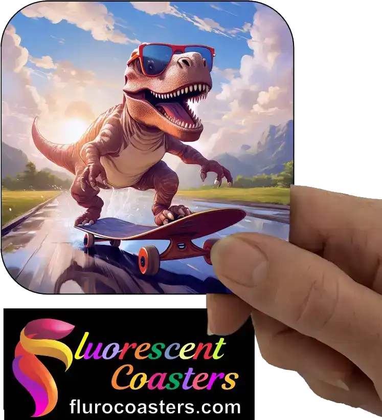 Fluorescent Coasters - Dinosaur On Skateboard, Fantasy / Kids, 401847