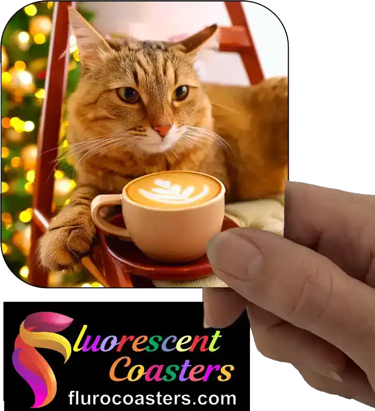 Fluorescent Coasters - Cat Coffee, Cats, 401850