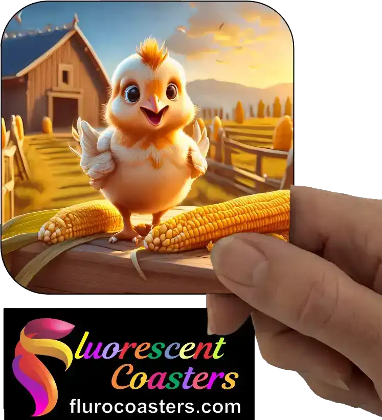 Fluorescent Coasters - Chick Eating Corn 2, Farm Animals, 401862