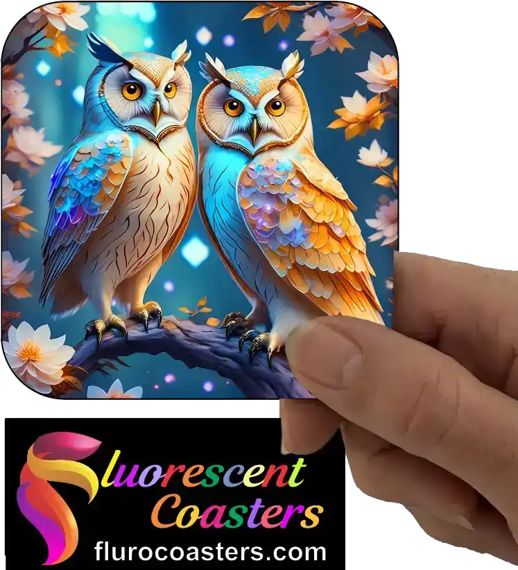 Fluorescent Coasters - Two Owls, Birds, 401870