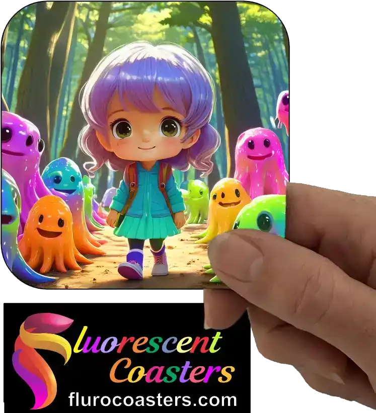Fluorescent Coasters - Cute Girl With Monsters 1, Fantasy / Kids, 401872