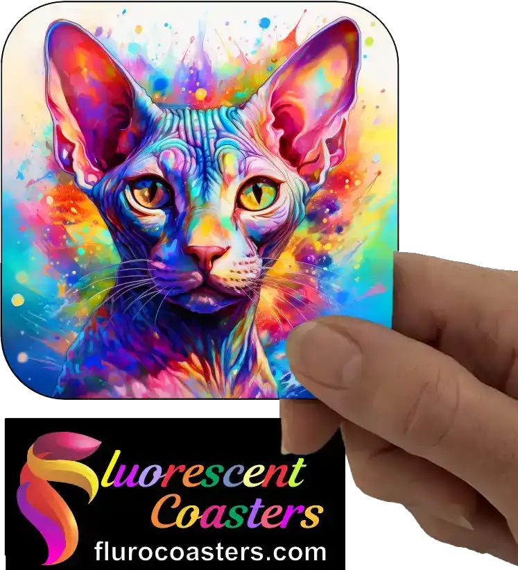 Fluorescent Coasters - Sphynx Cat 3, Cats, 402018