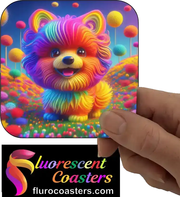 Fluorescent Coasters - Fluffy Dog 1, Humour / Cartoon Dogs, 402046