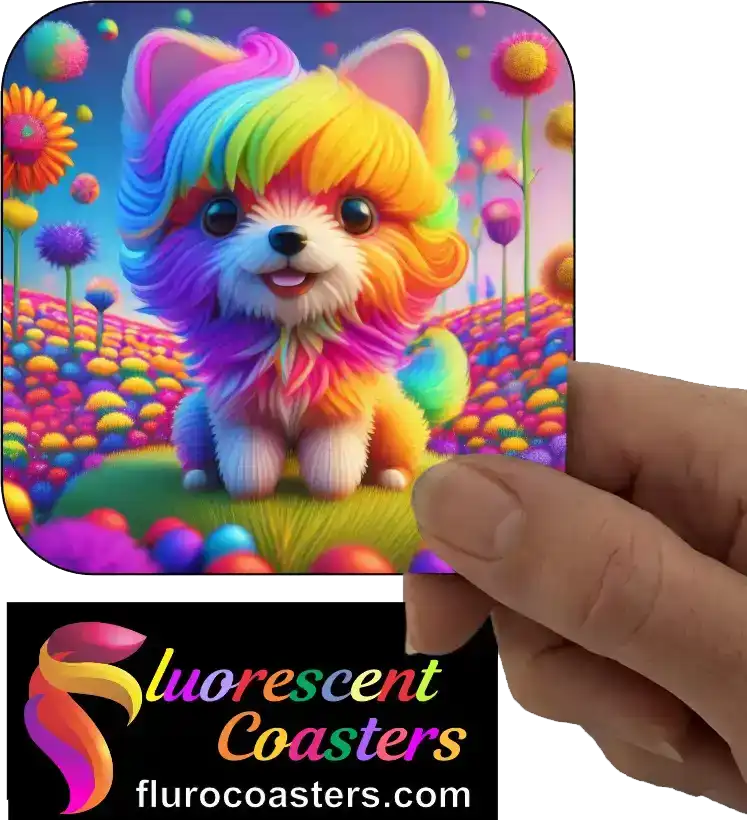 Fluorescent Coasters - Fluffy Dog 3, Humour / Cartoon Dogs, 402048