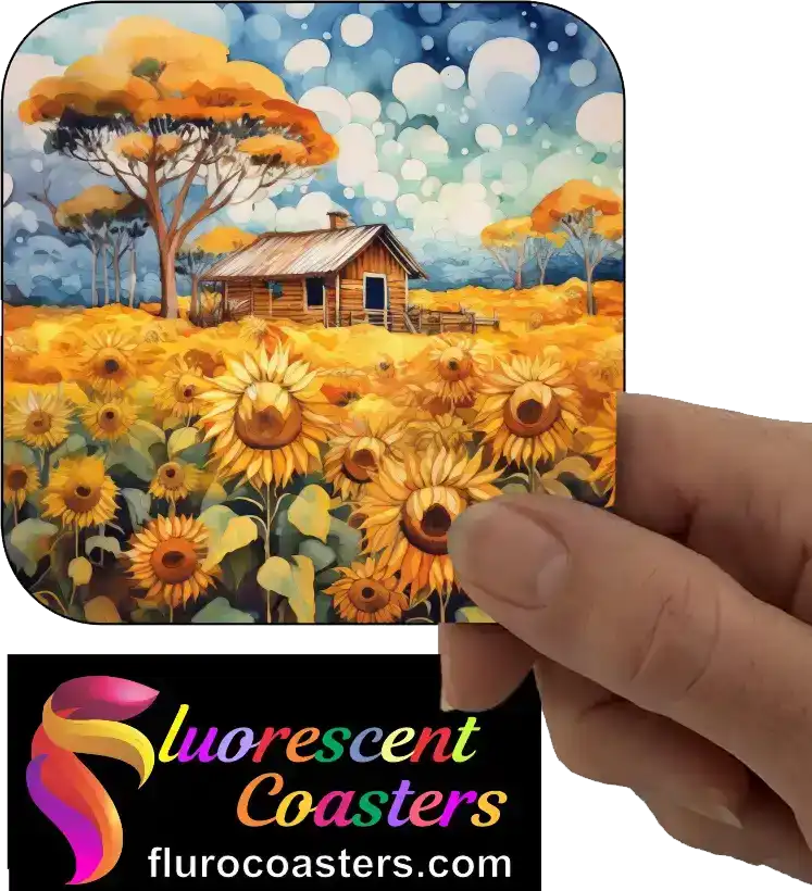 Fluorescent Coasters - Farm House In Field of Sunflowers, Nature, 402050