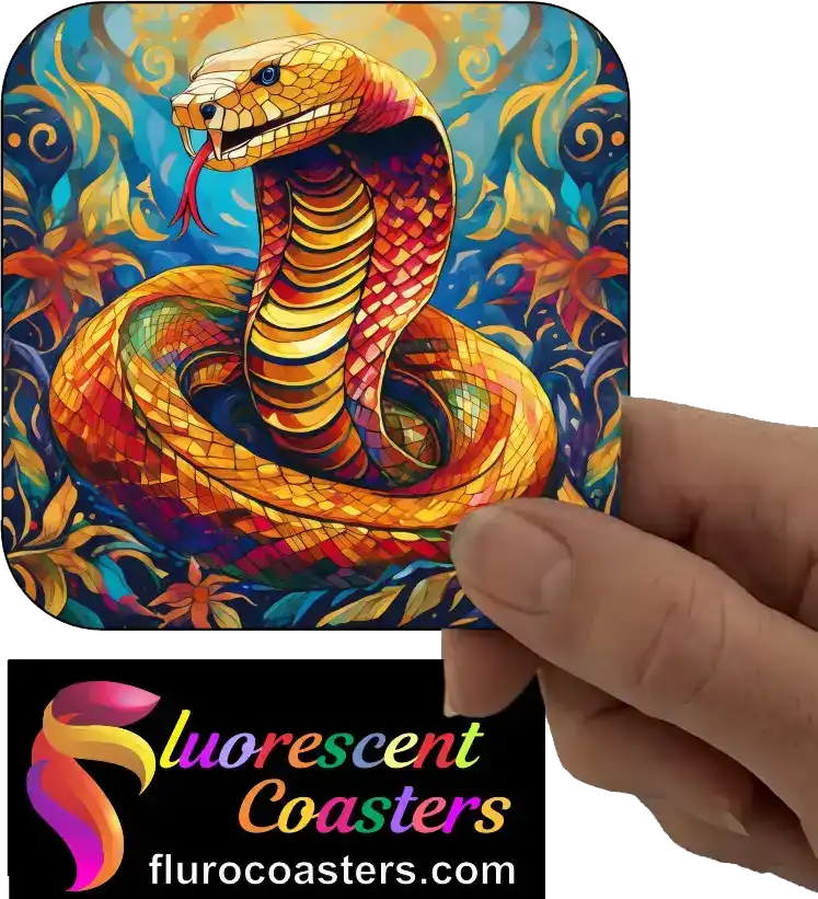 Fluorescent Coasters - Cobra Golden King Snake, Reptiles - Amphibians, 402061