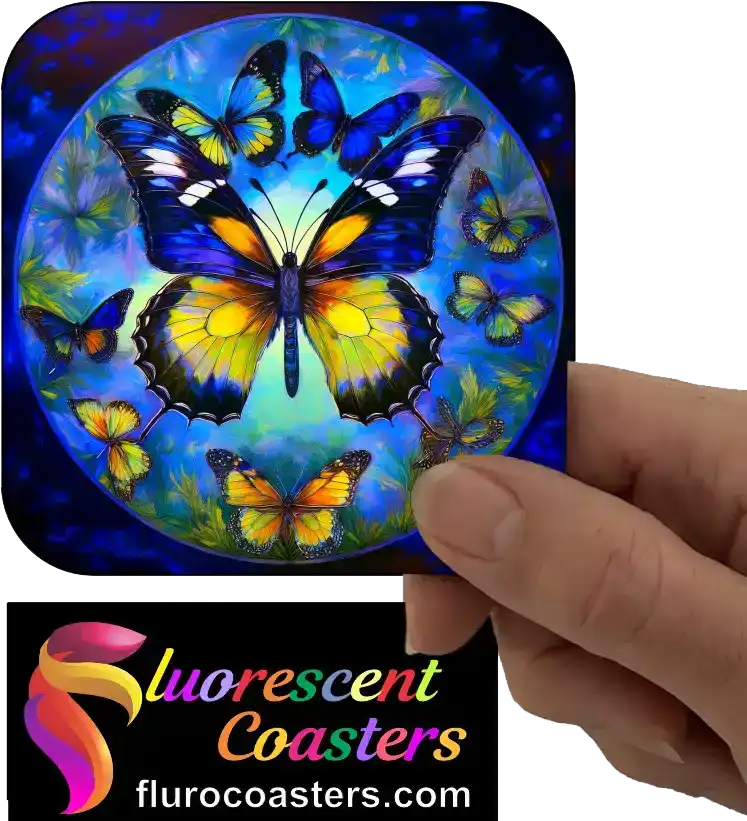 Fluorescent Coasters - Butterflies Blue and Gold, Insects, 402117