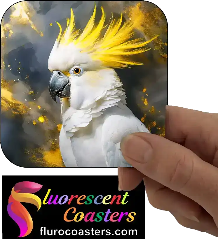 Fluorescent Coasters - Yellow Creasted Cockatoo 1, Australian Wildlife, 402137