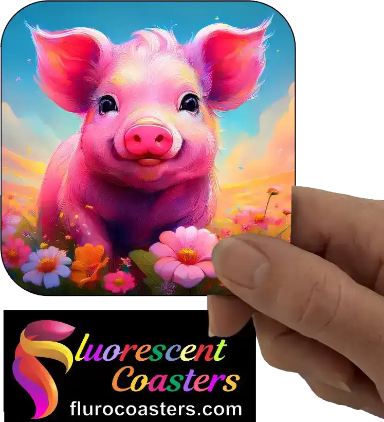 Fluorescent Coasters - Pig 2, Farm Animals, 402194