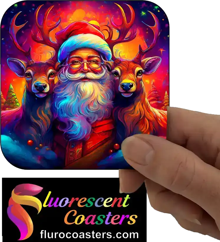 Fluorescent Coasters - Father Christmas with Reindeers 1, Festivities / Religion, 402293
