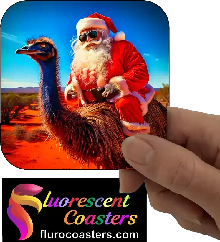 Fluorescent Coasters - Santa Clause Riding Emu 1, Festivities / Religion, 402343
