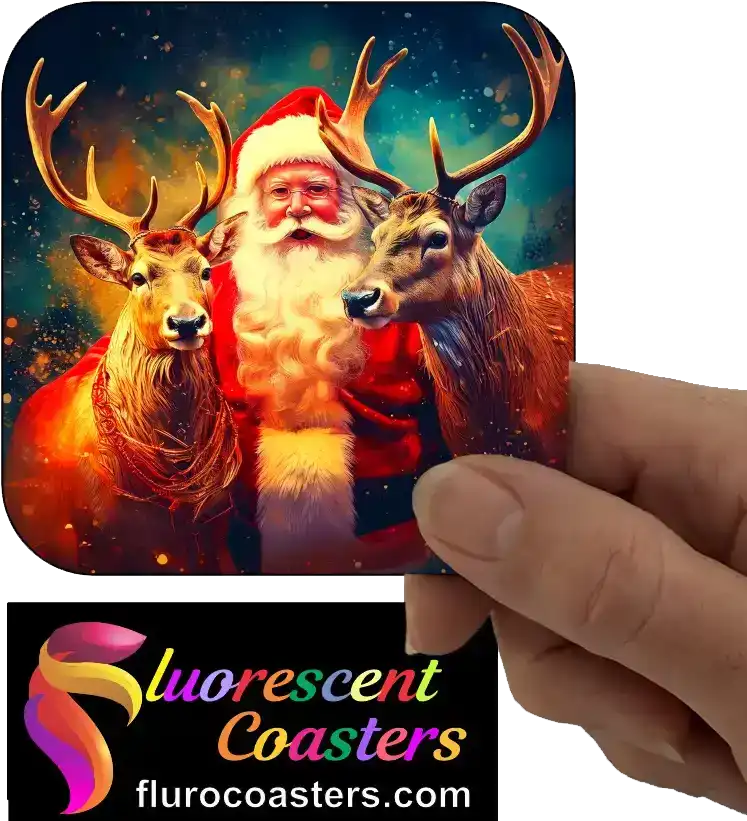 Fluorescent Coasters - Father Christmas Santa with Reindeer 1, Festivities / Religion, 402372
