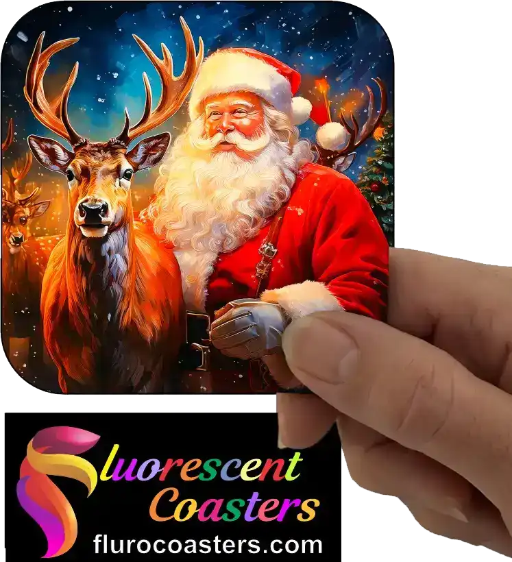 Fluorescent Coasters - Father Christmas Santa with Reindeer 2, Festivities / Religion, 402373