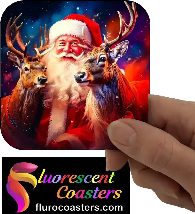 Fluorescent Coasters - Father Christmas Santa with Reindeer 3, Festivities / Religion, 402374