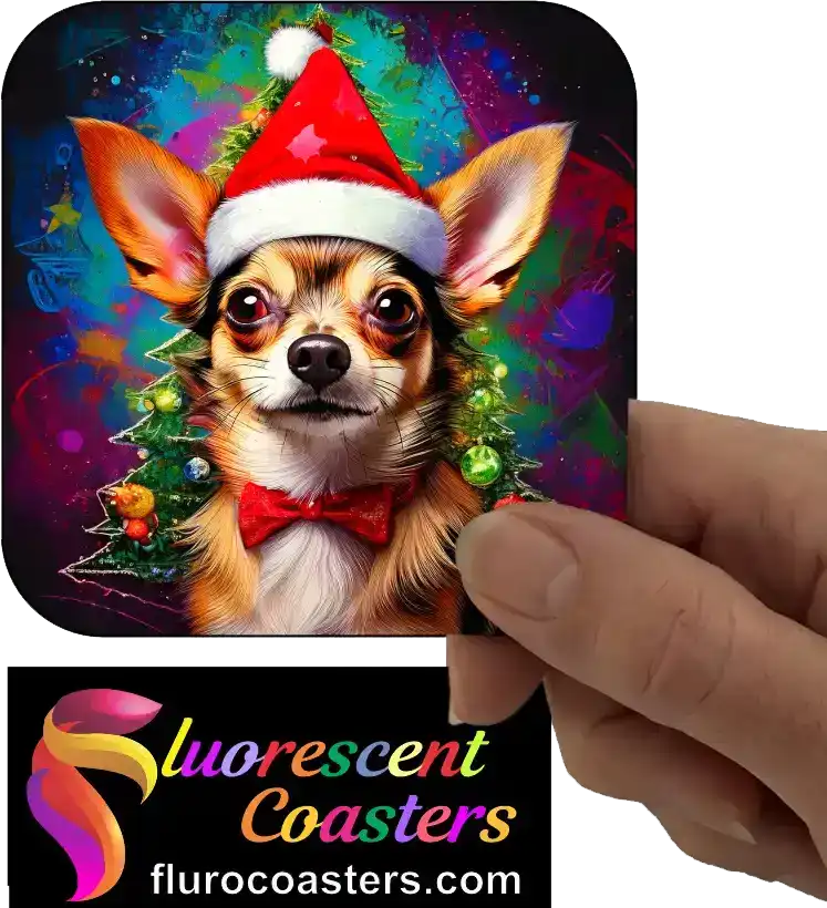 Fluorescent Coasters - Chihuahua Dog Wearing Christmas Hat 1, Festivities / Religion, 402390
