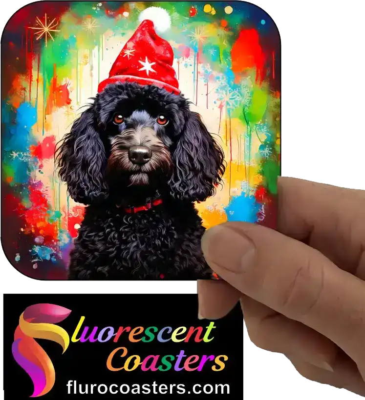 Fluorescent Coasters - Black Poodle Dog Wearing Christmas Hat 2, Festivities / Religion, 402395