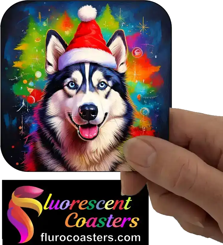 Fluorescent Coasters - Husky Dog Wearing Christmas Hat 1, Festivities / Religion, 402396