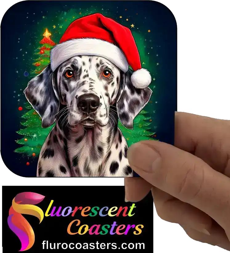 Fluorescent Coasters - Dalmatian Dog Wearing Christmas Hat 2, Festivities / Religion, 402399