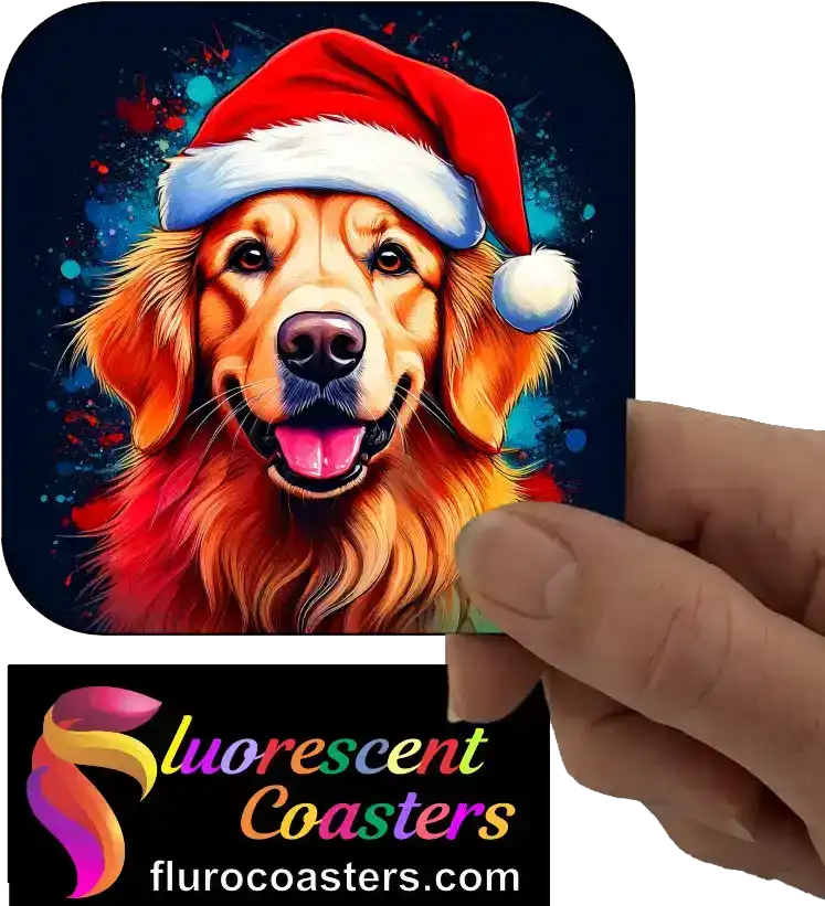 Fluorescent Coasters - Golden Retriever Dog Wearing Christmas Hat 1, Festivities / Religion, 402416