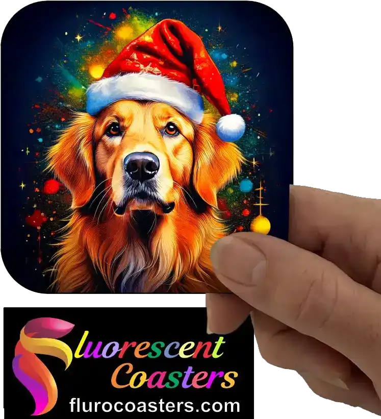 Fluorescent Coasters - Golden Retriever Dog Wearing Christmas Hat 3, Festivities / Religion, 402418