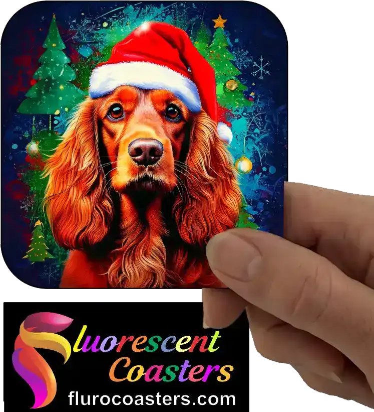 Fluorescent Coasters - Cocker Spaniel Dog Wearing Christmas Hat 2, Festivities / Religion, 402420